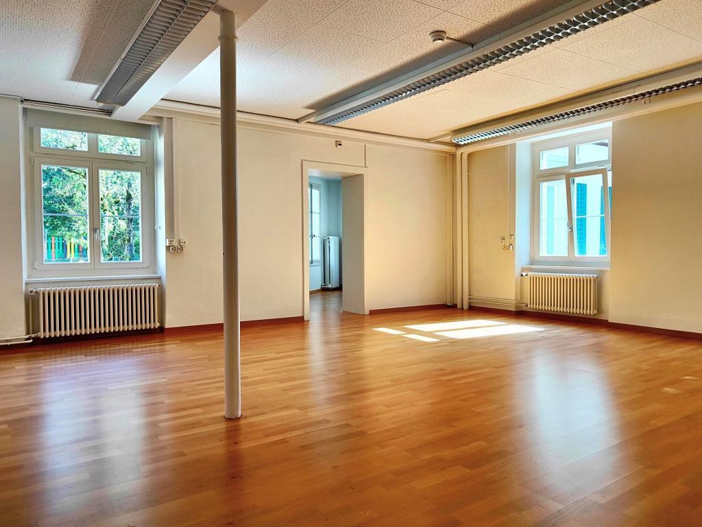 Diese Einheit verfügt über zwei Zutritte und die Räume sind mit einem internen Korridor verbunden, so dass man über fünf Büro-Zimmer verfügt. Eine Teeküche steht zur alleinigen Nutzung zur Verfügung. Die WC's sind im oberen Stockwerk und es hat nebst einer Treppe auch einen Personenlift.